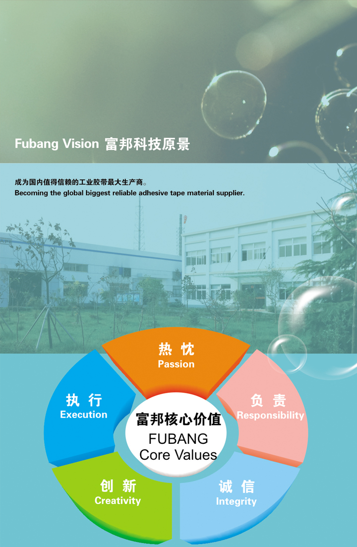 常熟市富邦胶带有限责任公司,始建于2000年,专业从事于 电子电工,光电科技, 风电行业等多个相关领域新材料的研发设计与制造,富邦人凭着孜孜不倦的精神, 以科技进步为 先导,同时引进国内外先进的压敏胶生产涂布技术直...